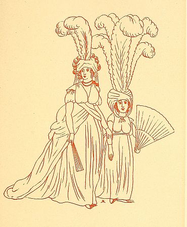 "The fair Circassian has not yet made her appearance in public. A very splendid equipage is now building in Long Acre for her. Several of our dashing young men of fashion have offered themselves as drivers to the Eastern beauty."—(Times, Dec. 24, 1799.)