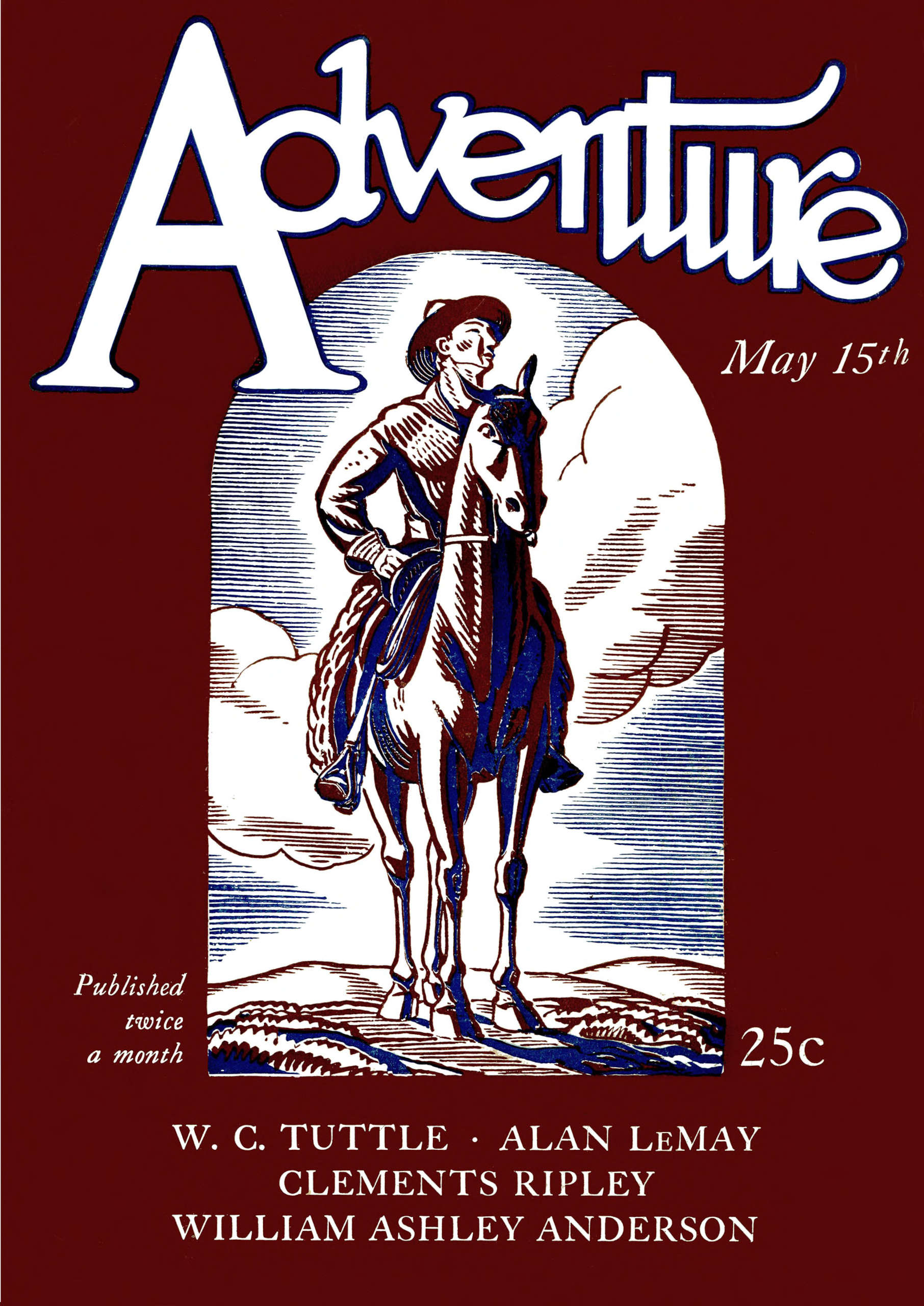 Transcriber’s Note: This story appeared in the May 15, 1927 issue of Adventure magazine.