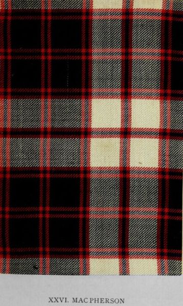 The Macpherson tartans present unwonted difficulty in consequence of the multiplicity of setts, each having claims of its own. These are (1) the Chief’s, (2) the Cluny, or full dress, (3) the Hunting, and (4) the Clan tartans. The first, though one of the oldest designs, has often been wrongly presented. Of the second, which was illustrated in the Vestiarium Scoticum, the Cluny Macpherson of 1850 wrote to Messrs Smith, then compiling a book of tartans, that:-