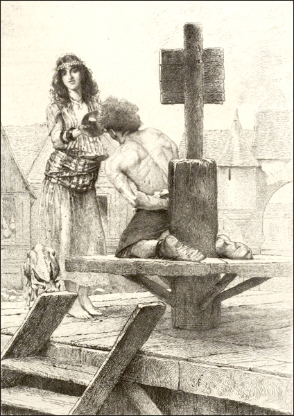 Quatre sergents du bailli du Palais, gardiens obligés de tous les plaisirs du peuple, les jours de fête comme les jours d’exécution, se tenaient debout aux quatre coins de la table de marbre.