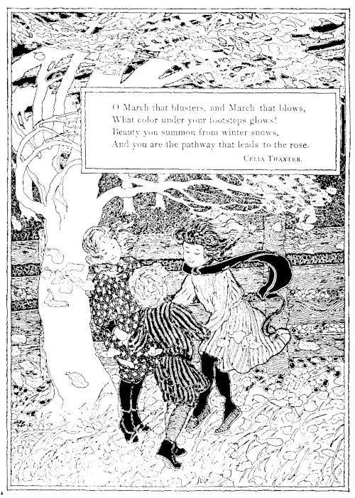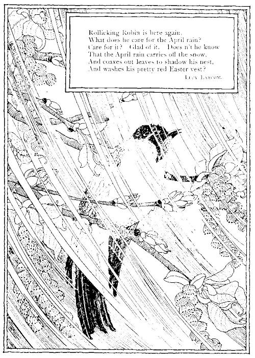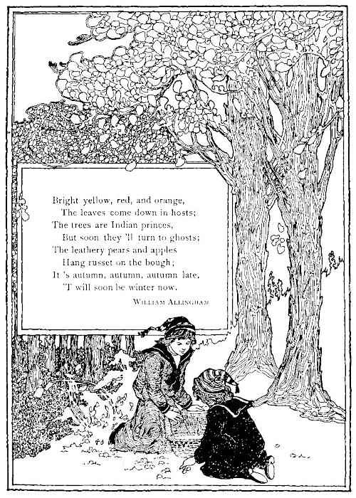 “Sir Robin” from “Childhood Songs” by Lucy Larcom; “A Flock of Doves” from “Poems for Children” by Celia Thaxter; “What the Winds Bring” by Edmund Clarence Stedman; “Hiawatha”; “The Children’s Hour”; “Christmas Bells” by Henry Wadsworth Longfellow; “The Miraculous Pitcher”; “The Pomegranate Seed” by Nathaniel Hawthorne.