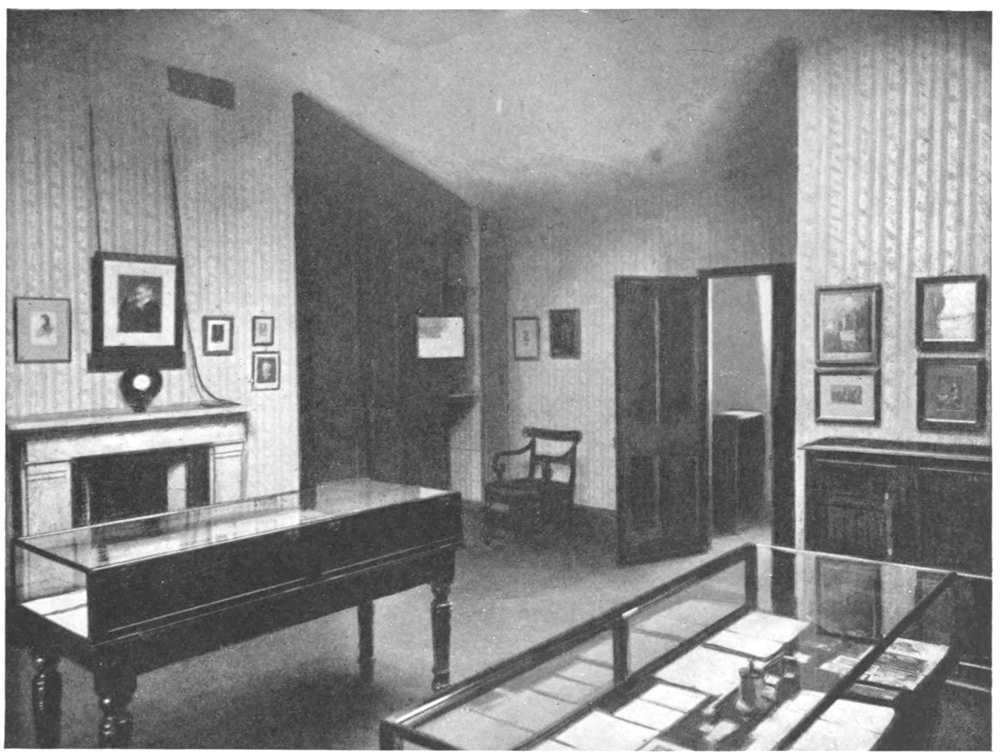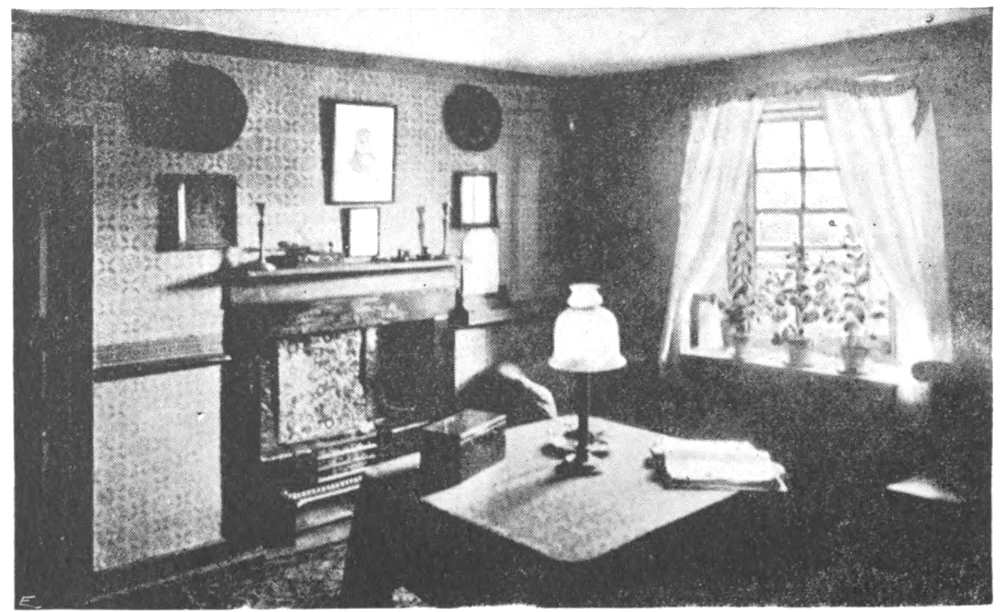 It was into the ground-floor room—at that time spoken of as the “parlour”—that Edward Irving was ushered when he paid his one visit to Cheyne Row, in autumn 1834. “I recollect,” writes Carlyle in the Reminiscences, “how he complimented her (as well he might) on the pretty little room she had made for her husband and self; and, running his eye over her dainty bits of arrangement, ornamentations (all so frugal, simple, full of grace, propriety, and ingenuity as they ever were), said, smiling: ‘You are like an Eve, and make a little Paradise wherever you are.’”