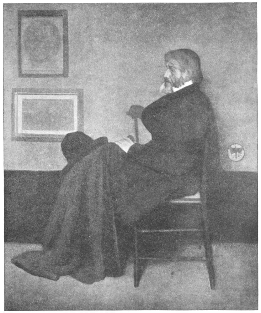 “Mr. Whistler, in the Glasgow Corporation Art Galleries, has distinctly succeeded in making the face of Carlyle interesting. He has avoided anything like exaggeration. He has not tried to make capital out of the rugged mass of the hair, or to give a wild-man-of-the-woods look to the face by laying stress on its deep lines and stern contours. The head is noble, quiet, and sad. The artist has tried to paint a serious portrait rather than to give a ‘view,’ and he has succeeded.”—David Hannay in the Magazine of Art.