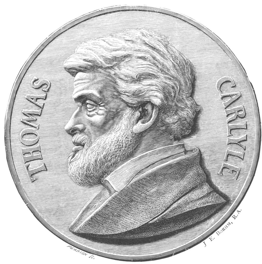 The medallion has been reproduced from a wood engraving by Pearson. It was presented to Carlyle in 1875, on his eightieth birthday, by friends and admirers in Edinburgh.