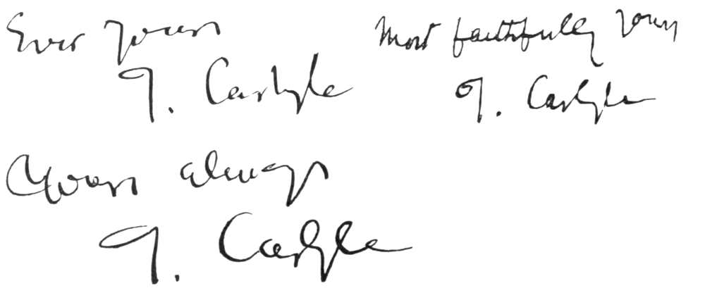 Carlyle’s marriage with Jane Baillie Welsh took place on October 17th, 1826, at Templand, where Mrs. Welsh then resided. The ceremony was of the quietest description, his brother John Carlyle being the only person present besides Miss Welsh’s family.