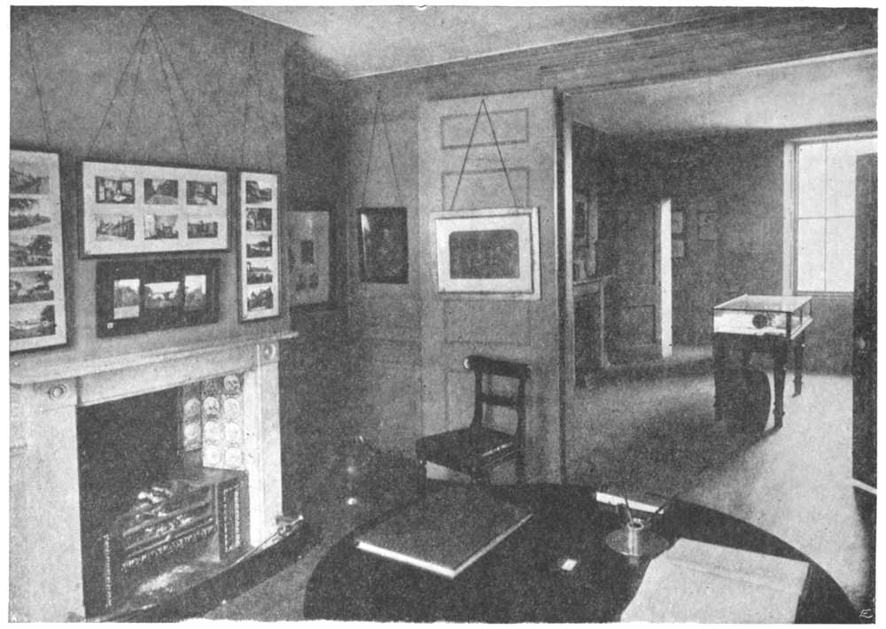 In the Entepfuhl of Sartor Resartus Carlyle has pictured his native village. It consisted of a single street, down the side of which ran an open brook. “With amazement,” he writes, “I began to discover that Entepfuhl stood in the middle of a country, of a world.... It was then that, independently of Schiller’s Wilhelm Tell, I made this not quite insignificant reflection (so true also in spiritual things): ‘Any road, this simple Entepfuhl road, will lead you to the end of the world!’” The room at Arch House in which he was born now contains some interesting mementoes. On the mantelpiece are two turned wooden candlesticks, a gift of John Sterling, sent from Rome; the table provides a resting-place for his study-lamp and his tea-caddy. Most of the furniture came from Cheyne Row.
