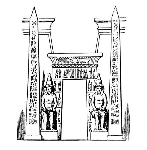 [43] Mr. W. E. Cooper states the height of Hatasou’s obelisk as upwards of 97 feet; Lenormant giving it 30 metres (97 feet 6 inches) in altitude, and 368 tons in weight. The height of the obelisk of Thothmes I. is, according to the same authority, 90 feet 6 inches.