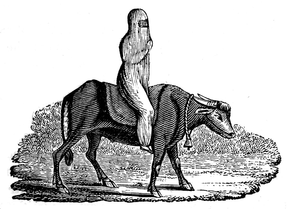 In Congo, people of rank are often carried by slaves in a sort of hammock swung upon poles, which is frequently protected from the sun by an awning thrown over it. Women in all parts of Africa are often seen riding on asses or oxen. They guide the latter by means of a string passed through a ring in the nose; and they sometimes manage to make these quiet beasts curvet and caper.