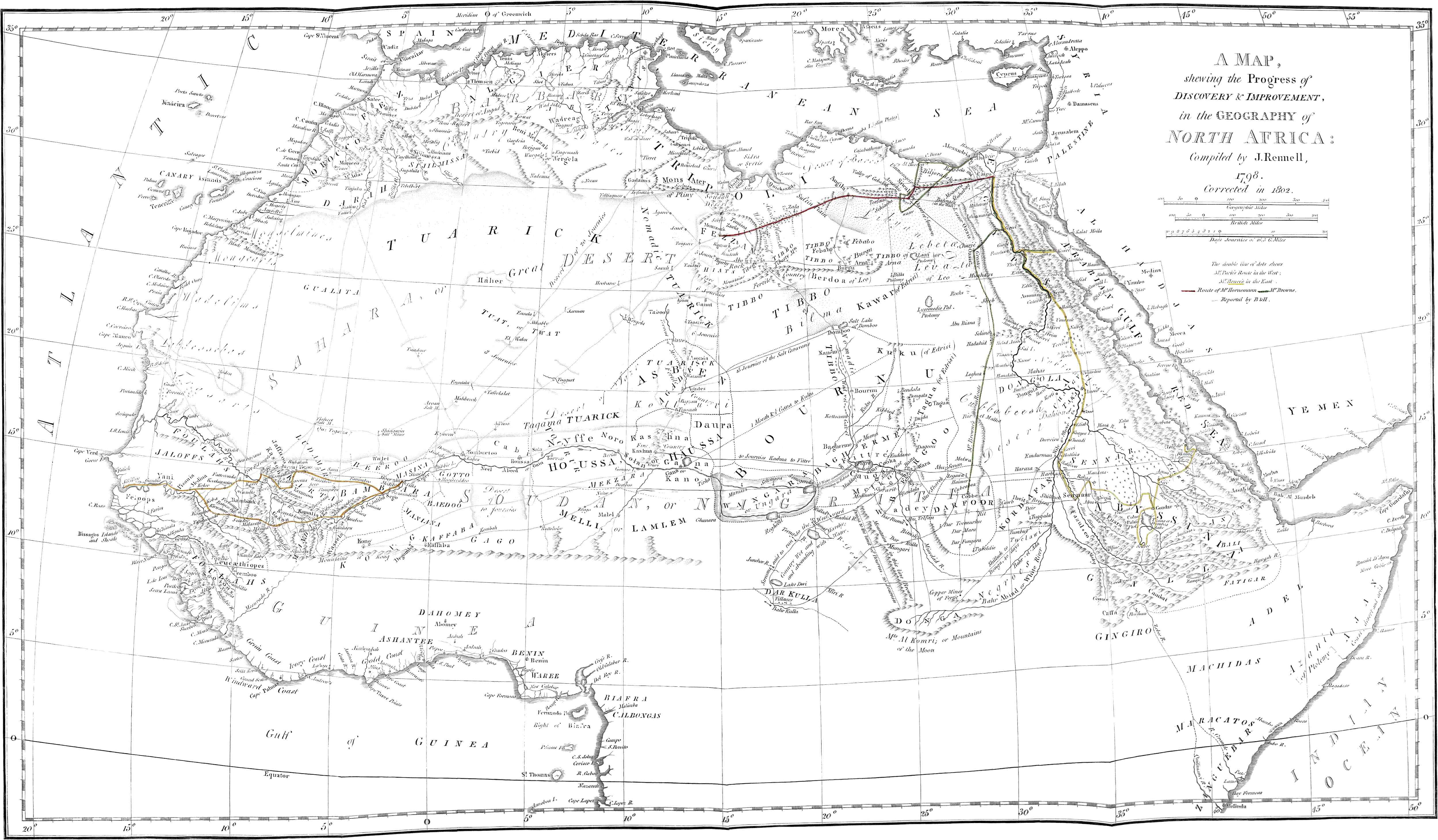 Were it necessary to illustrate such position by example, the writer would refer, as a special instance, to the elucidations of Major Rennell on the communications in question: to that most accurate and acute philosopher and geographer, the details have afforded matter of enquiry and deduction of the highest import to science. By analysis, and a comparative view of accounts given of journies and places, in reference to the plans of D’Anville, and other geographers; to modern travels; to ancient expeditions; to descriptions of ancient writers; and above all, to those of the father of history, Herodotus; Major Rennell hath corrected the map of Africa, with a learning and sagacity which hath converted conjecture into knowledge; and on experience of those who have explored parts of that great continent, given confidence to each future traveller who may visit its remotest regions.