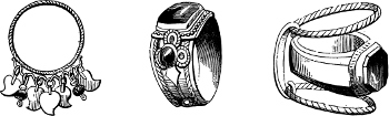 Rings as charms and talismans form a class apart. Often the peculiar form of the circlet was conceived to have a symbolic virtue, but more frequently the talismanic quality depended upon some curious engraved device, upon the stones set in the rings, or upon a mystic or religious inscription. Rings of healing were talismans valued for their special power to cure disease; the “cramp rings,” dated in legend back to the time of Edward the Confessor, were notable in this series.