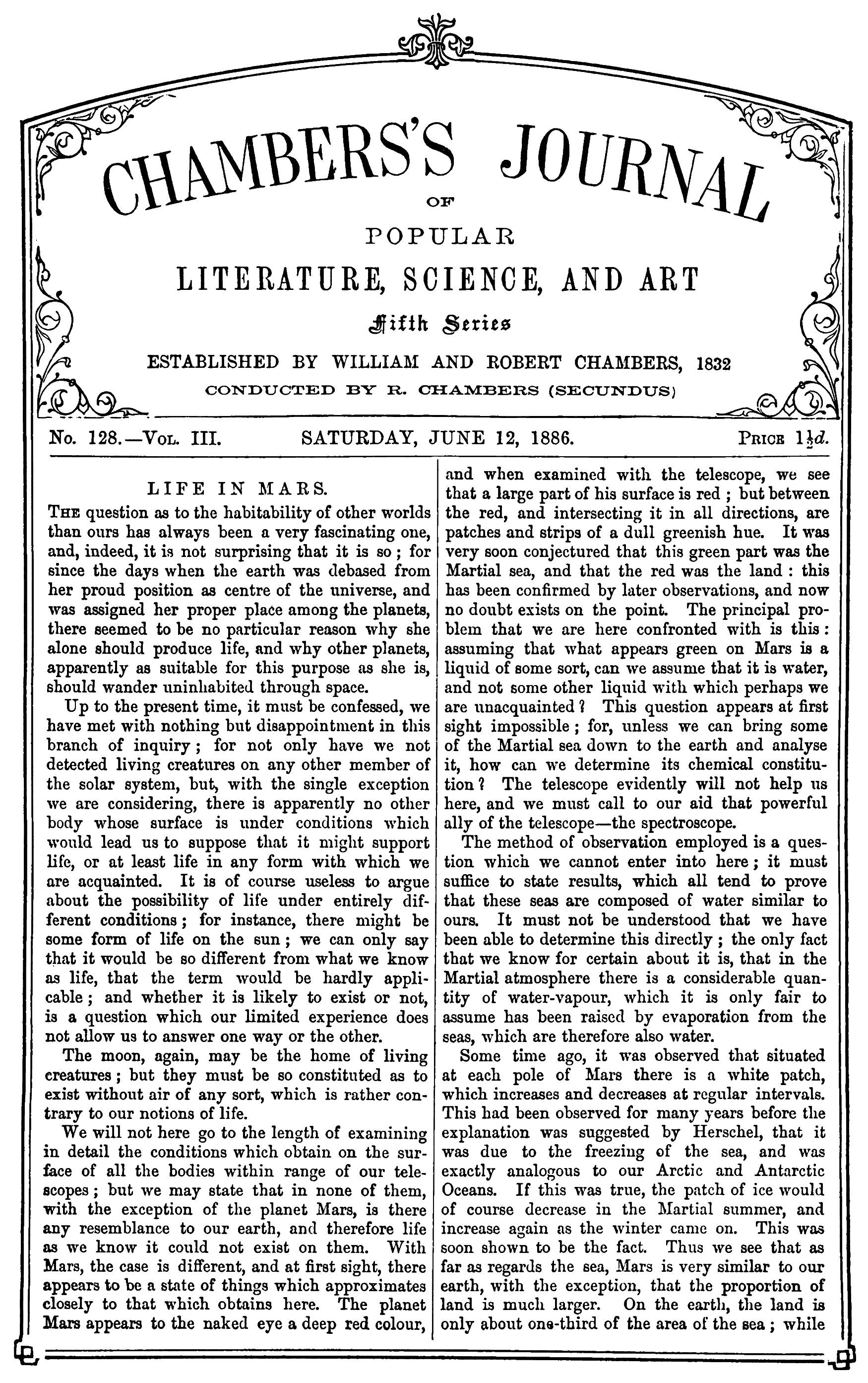 Title: Chambers's Journal of Popular Literature, Science, and Art, fifth series, no. 128, vol. III, June 12, 1886