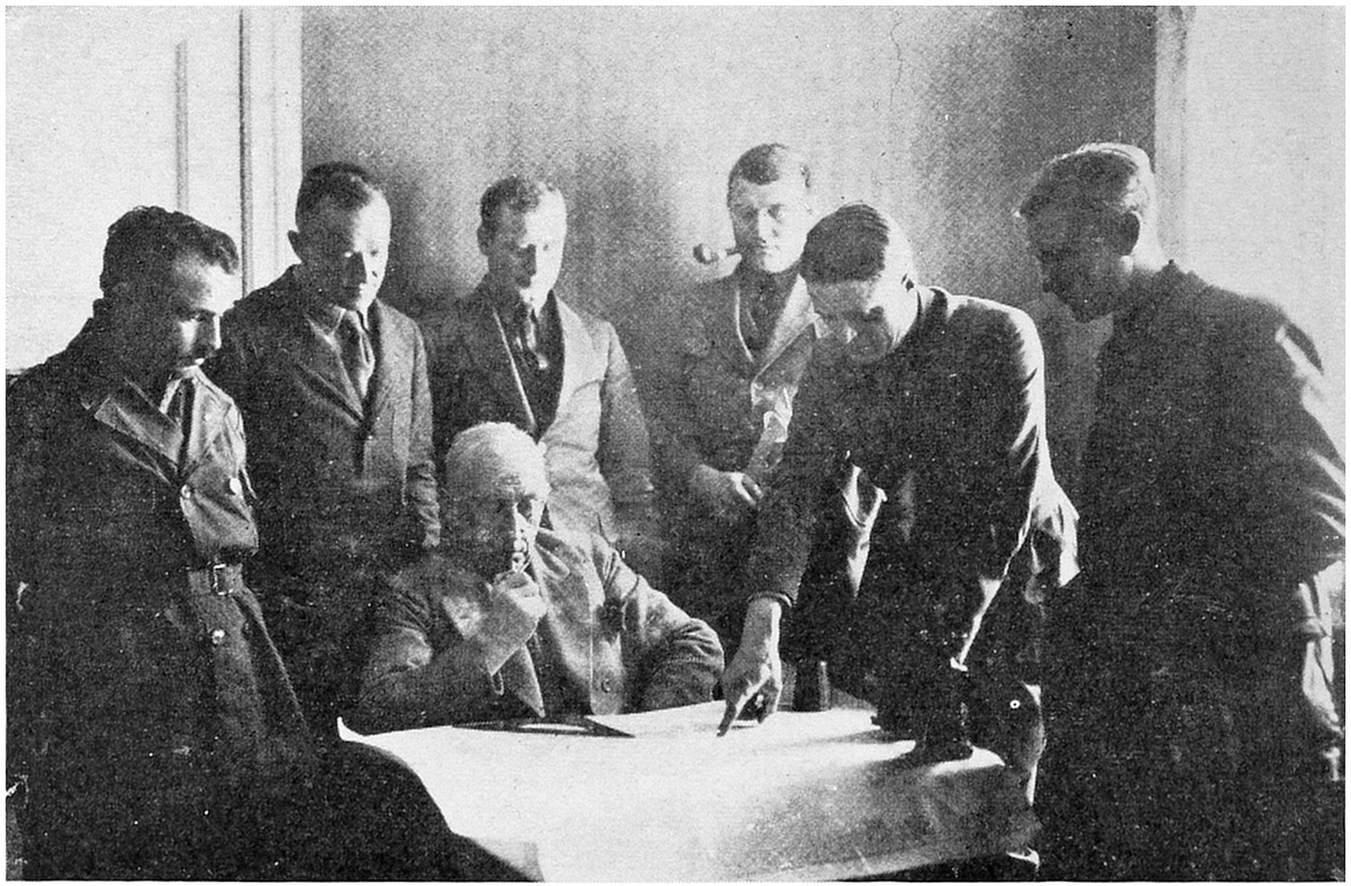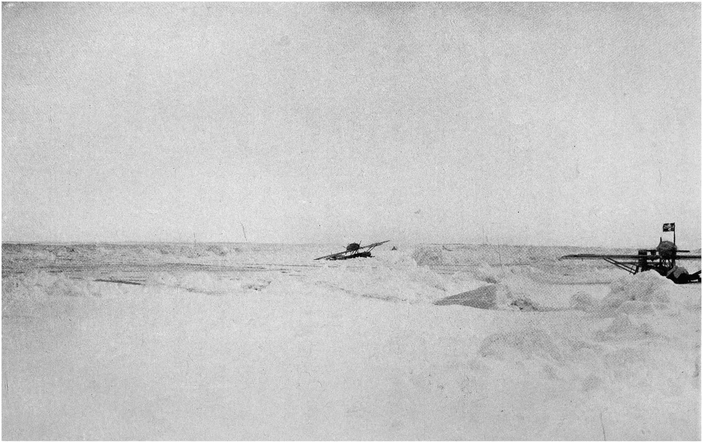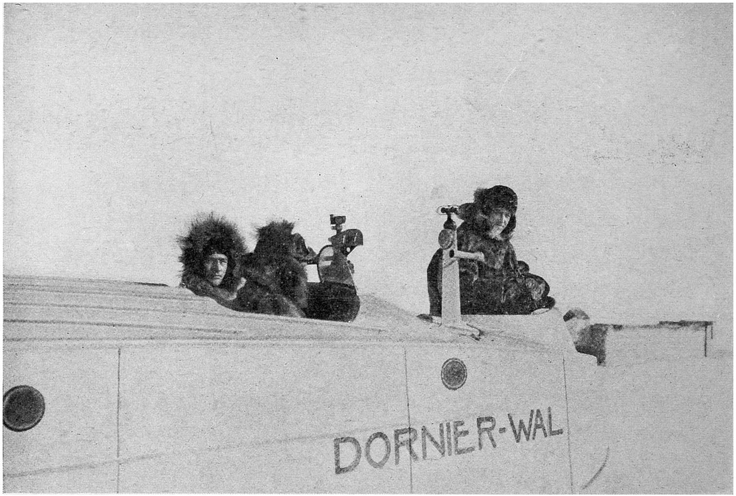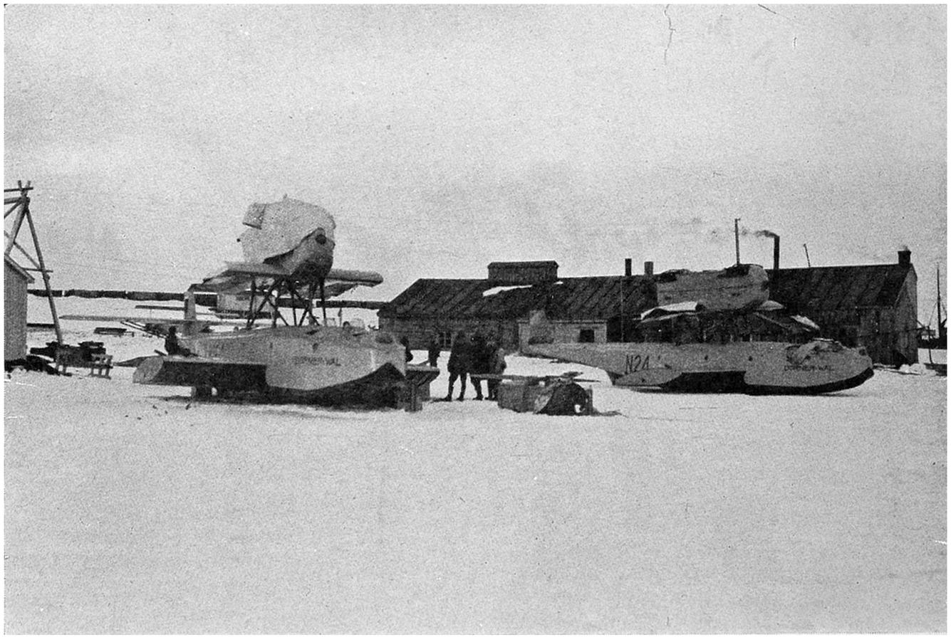 Herewith the task of the meteorologists was ended, and in the last unforgettable minutes we all stood as spectators, filled with admiration for the six brave men who smilingly said good-by as if they were just going on an everyday flying-trip. Not long afterwards both machines were out of sight in the bright blue sky flying in the direction of Cape Mitra.