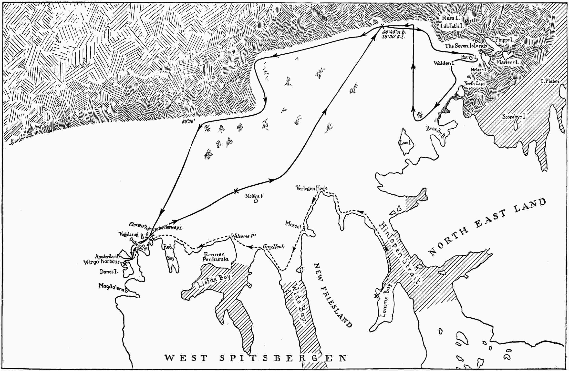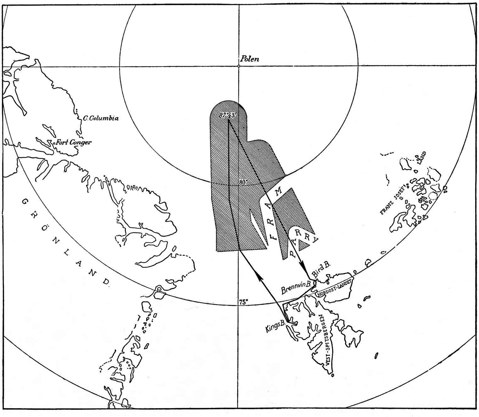 THE COURSE OF THE SHIPS ON WATCH, “FRAM” AND “HOBBY,” DURING THE COURSE OF THE EXPEDITION