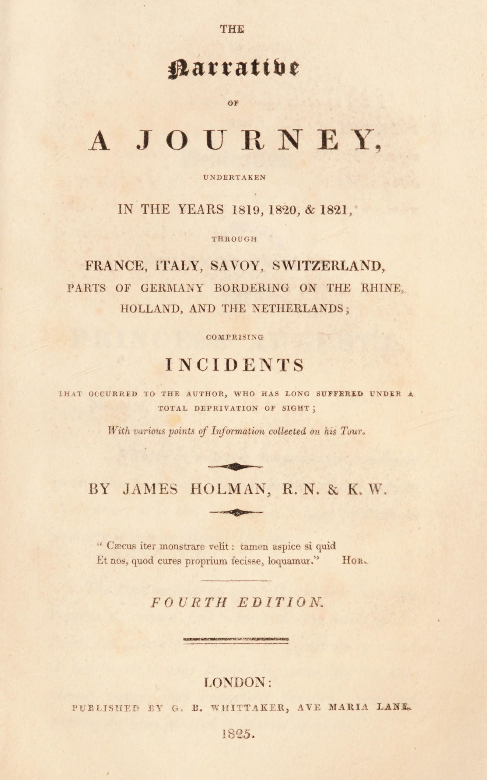 Subtitle: comprising incidents that occurred to the author, who has long suffered under a total deprivation of sight; with various points of information collected on his tour