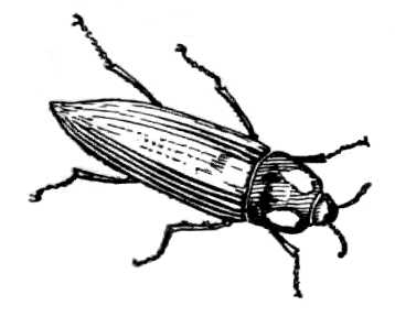 The Aztecs of Mexico were accustomed to use these insects to light them through the forests by night. Fastening them to their hands and feet, they passed flaming along. It is said that the Mexicans still use them for this purpose. The fire beetle is shown to the left of this inscription.
