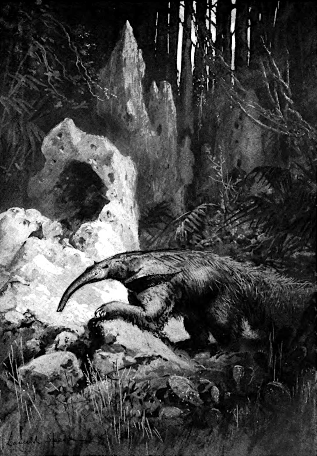 Though the order of neuropterous—which, by the way, means nerve-winged—insects does not contain any ants, yet the so-called white ants or termites—which are very like ants in their ways, and almost, or quite, as interesting to talk about—are included in it. They are commonest in tropical or, at any rate, very hot countries, such as Africa, Australia, and South America, and here the conical, or dome-shaped structures, made of red earth, which they erect above the surface of the ground, and which contain the greater part of the nest, are of such dimensions as to take a very prominent part in the features of the landscape. Often they are covered with vegetation, including bushes, or even small trees, on which, in Africa, antelopes are accustomed to browse. In Australia there is no reason, that I can see, why kangaroos should not, at least upon the grass which must often clothe them, and which is their staple of food.