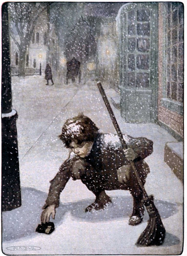 IT was after dinner, I think, as I was seated in my arm-chair before the fire, tired out with hard work, and therefore half asleep. All day long it had been snowing hard, and even now, at seven o’clock in the evening, it was still coming down in great white flakes, making the earth look like a beautiful birthday cake. There was no light in the room, except the red glimmer of the fire that flickered and flared on the wide hearth, roaring up the great chimney, as if it was grumbling to itself at having to go out into the cold, cold night.