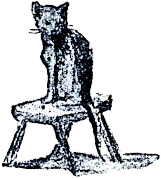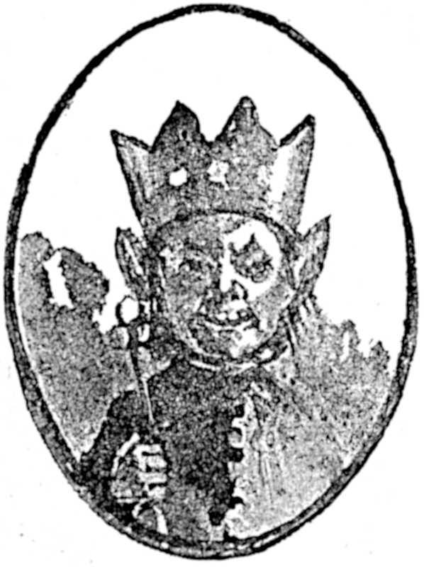 When the royal pair had taken their seats, a loud-voiced cricket chirped loudly to command silence, and then a wise-looking owl made a very long speech, in which he bade the King and Queen welcome in the name of their dutiful subjects. The King was about to reply, when a grotesque figure with a large head and pointed ears suddenly started up out of the earth, and rolled like a ball to the foot of the throne.