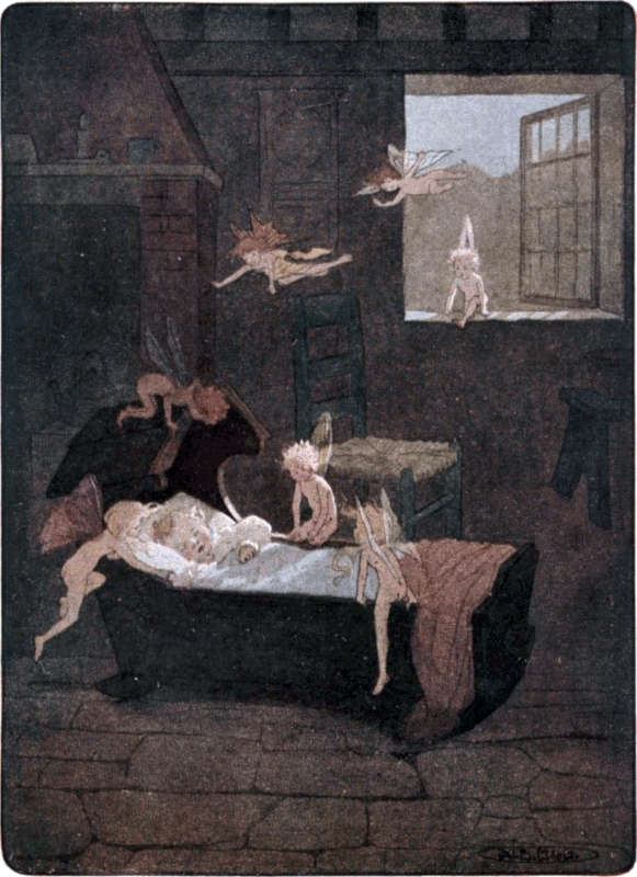 Well, as I said before, I was seated half-asleep in my arm-chair in the dark, watching the fire burning merrily on the hearth, and sending out great shafts of red light to explore dark corners, where goblins are fond of lurking. On the roof and on the wall danced the firelight shadows in the most amusing manner; but they are foolish folk these same shadows, belonging to the strange Kingdom of Shadowland, which lies near the realm of Faery; yet not mingling with it in any way, for in Faeryland, as wise children know, there are no shadows at all.