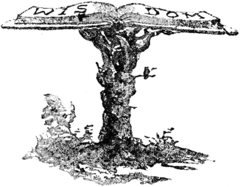 Forest?—yes!—I was now in an old, old forest, for, as I listened to the cricket’s song, the twigs on the logs became fresh and green, then seemed to grow larger and larger, until they hid the red light of the fire, and branched out with great leafy boughs into the room. I looked up in surprise, and saw the green branches, high above my head, waving in the soft wind, and I could hear the singing of unseen birds sound through the chirping of the crickets. Under my feet, instead of a carpet, there was now fresh green turf covered with daisies, and my arm-chair was a chair no longer, but the mossy trunk of a fallen tree. The red light glimmered behind the leaves, as though the fire was still there, but I knew in some strange way that it was not the fire, but the crimson glare of the sunset. A great wave of phantasy seemed to roll through the forest, and I started to my feet, as the crickets finished singing, with a curious sense of wonderful knowledge and vague longings.