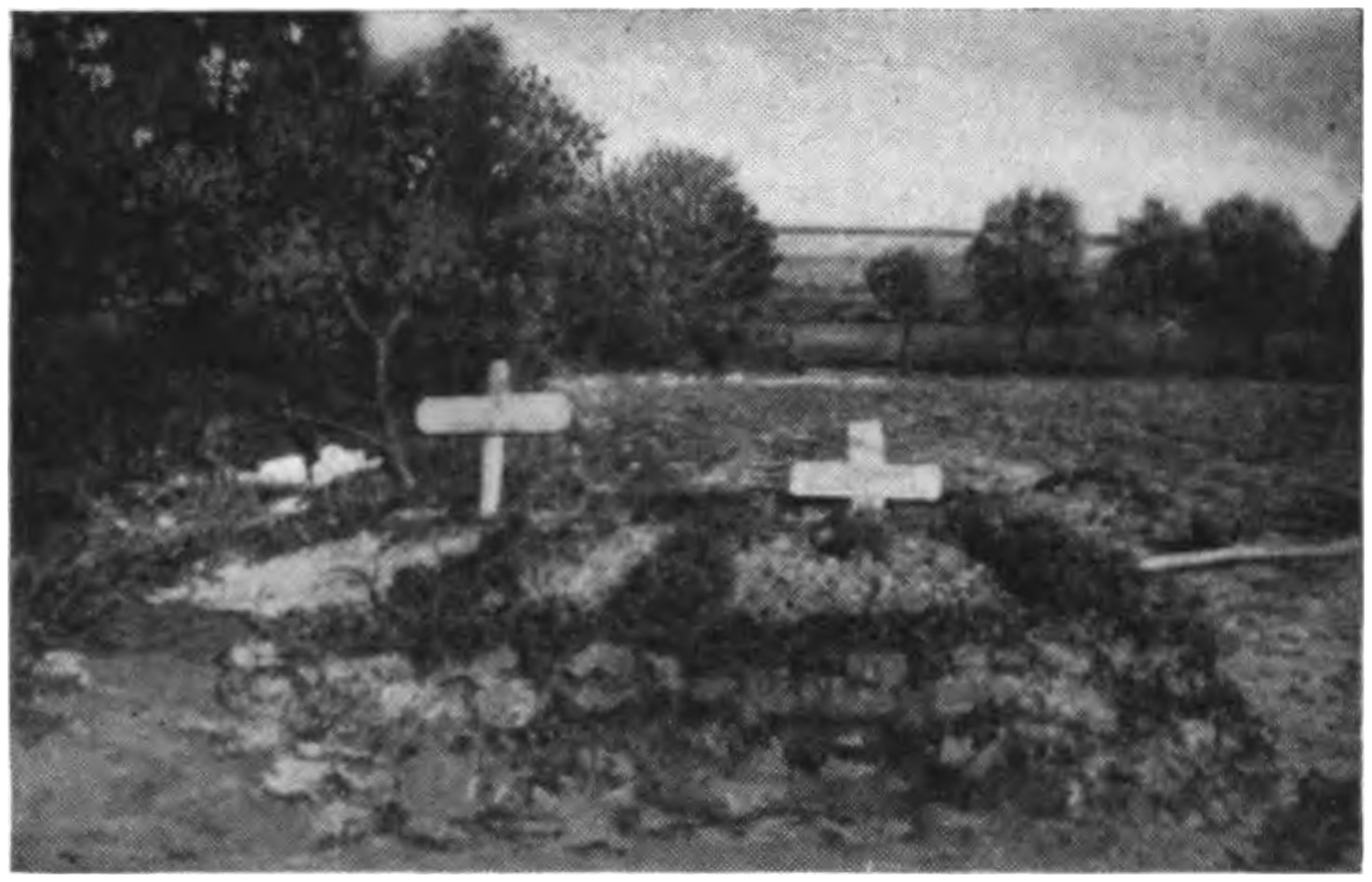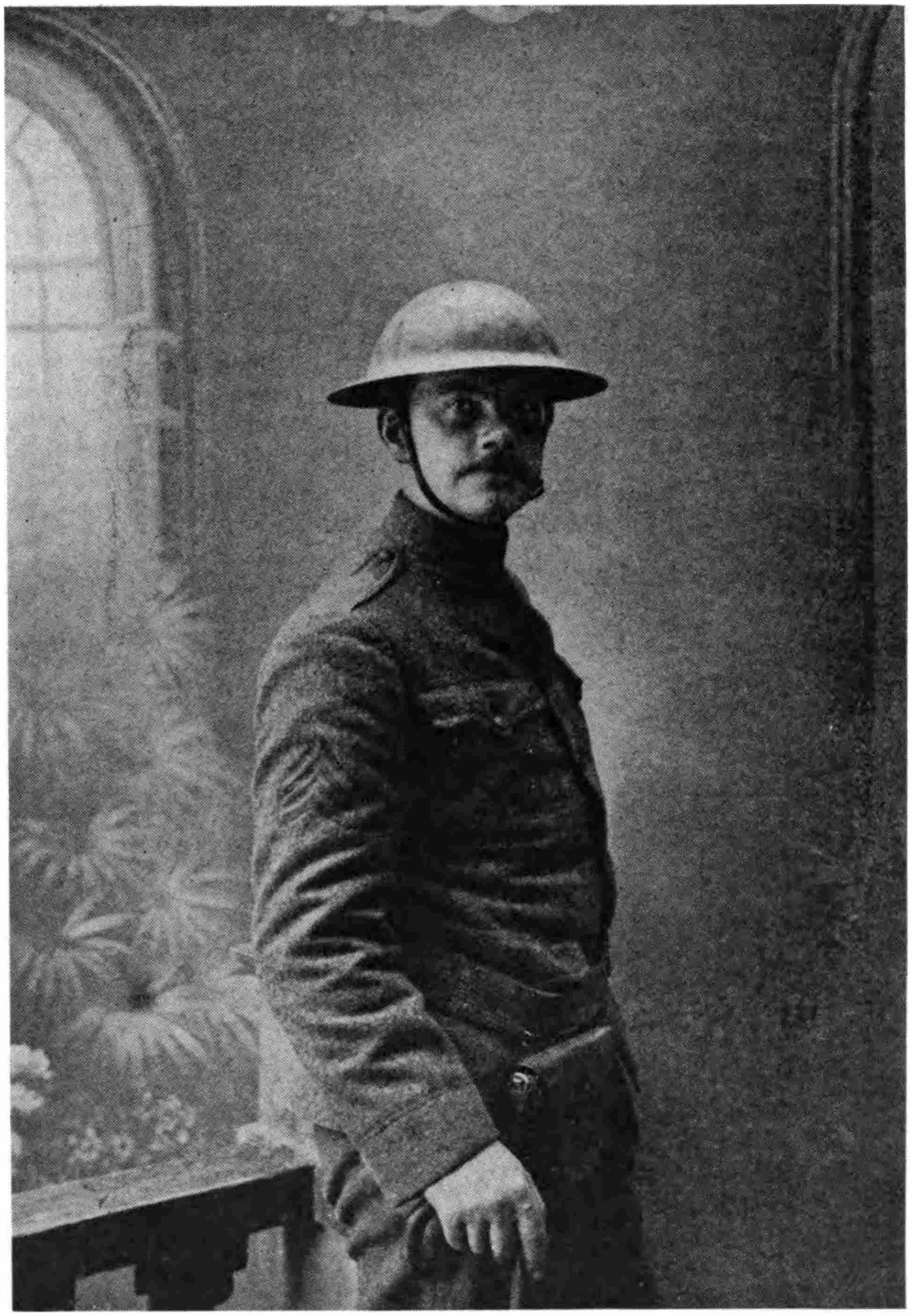 Meanwhile Madame and the Sergeant had generously admitted all eleven of us into their conversation. A spirited conversation it was, too, in spite of the fact that she knew no English and the extent of his French was “du pain,” “du vin,” “cognac” and “bon jour.” Those of us who knew a little more of the language of the country acted as interpreters for the others. We learned the names of the children and their ages. We learned that our hostess was a widow. Her husband had fallen in battle just one month before our arrival in her home. She showed us with simple pride and affection and restrained grief his picture. Then she showed us those of her two brothers—one now fighting at Salonica, the other a prisoner of war—of her mother and father, of herself dressed for First Communion.