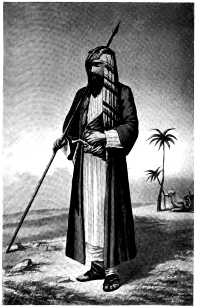 Early the next morning “the private carriage” which the Consul-General had kindly obtained for me, a shabby omnibus drawn by three old screws, made its appearance. I was to drive in it over the Lebanons, seventy-two miles, to Damascus; so I naturally viewed it with interest, not unmingled with apprehension. Quite a little crowd assembled to see me off, and watched with interest while my English maid, a large pet St. Bernard dog, my baggage, and myself were all squeezed into the omnibus or on top of it. The Consul-General sent his kawwass as guard. This official appeared a most gorgeous creature, with silver-mounted pistols and all sorts of knives and dangling things hanging about him. He rejoiced in the name of Sakharaddín, which I pronounced “Sardine,” and this seemed to afford great amusement to the gaping crowd which had assembled to see me off.