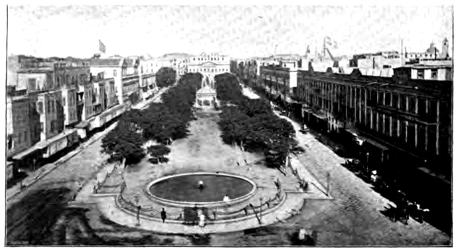 We passed Port Said and got to Jaffa in about two 367days. I was not impressed with Jaffa. The town looks like dirty, well-rubbed dice running down the side of a conical-shaped, green hill. Here I sent another telegram to Damascus to Richard—the Russian Vice-Consul kindly took charge of it—but all the same it never reached its destination, though I am certain it was not the Consul’s fault. At Jaffa we picked up an Effendi and his harím, and two Italian musicians, who played the concertina and guitar. The latter pair confided in me, and said they had made a mariage de cœur, and were really very hard up, in fact dependent on their talent; so I hit on a plan to help them. I asked the captain to let us have a little music after breakfast and dinner. They played, and I carried round the plate, and my gleanings paid their passage and something more. As for the Effendi’s harím she was carefully veiled and wrapped up in an izár, or sheet, and confined to her cabin, except when she was permitted at rare intervals to appear on deck. Her Effendi jealously watched her door, to see that nobody went in but the stewardess. However, she freely unveiled before me. I was not impressed with her charms, and I thought what a fine thing the sheet and the veil would be to some of our European women. There is an irresistible suggestion of concealed charm about them. It was my first experience of a real harím.