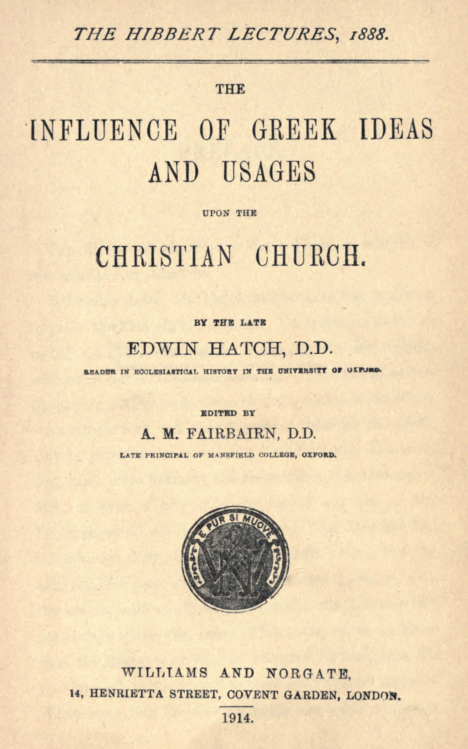 The Hibbert Trustees cannot add this volume to their series without a few lines of grateful acknowledgment. It is impossible to forget either the courteous readiness with which the accomplished author undertook the task originally, or the admirable qualities he brought to it. When he died without completing the MS. for the press, the anxiety of the Trustees was at once relieved by the kind effort of his family to obtain adequate assistance. The public will learn from the Preface how much had to be done, and will join the Trustees in grateful appreciation of the services of the gentlemen who responded to the occasion. That Dr. Hatch’s friend, Dr. Fairbairn, consented to edit the volume, with the valuable aid of Mr. Bartlet and Professor Sanday, was an ample pledge that the want would be most efficiently met. To those gentlemen the Trustees are greatly indebted for the learned and earnest care with which the laborious revision was made.