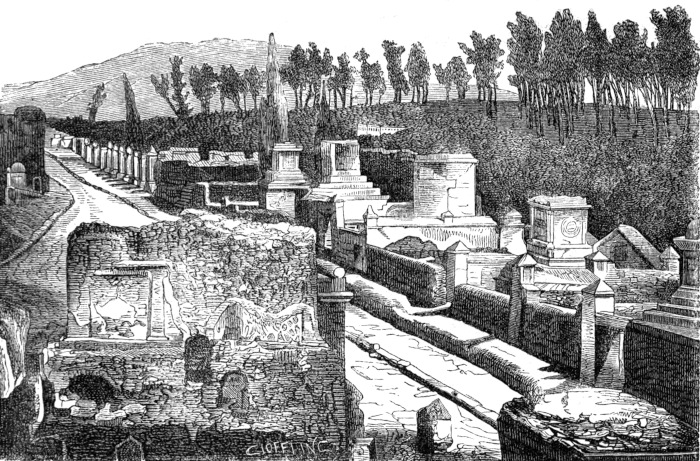 Da queste nozioni di storia pompeiana, che sono conformi a quelle che ho pur io date nei capitoli del primo volume di quest’opera, inferisco: a che dunque cercar in città caserme e stazioni militari, se i soldati dovevano rimanere fuori della città? Vero è che quanto è scoperto del Pagus Augustus-Felix non ha rivelato quartiere di sorta, ma solo quella parte che l’attraversa ed è la Via delle Tombe e che percorreremo nell’ultimo capitolo di quest’opera; ma rammentiamoci altresì che ancor molto rimane a trarre in luce e che gli scavi ulteriori ponno co’ loro risultamenti diradare ogni dubbio e risolvere la quistione.