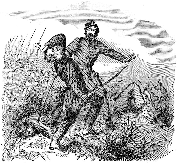 25. Maj. Pyron’s Texans were defeated at Apache Cañon, between Santa Fé and Fort Union, by Federal troops under Maj. Chivington.