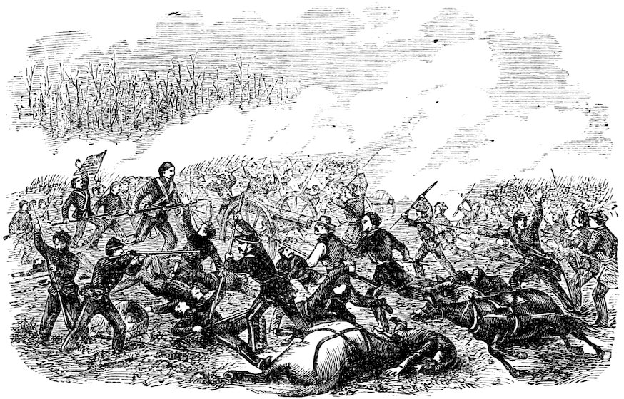 6–7. Battle of Pittsburg Landing, Tenn. The combined rebel army, under Gens. Johnston and Beauregard, attacked Gen. Grant’s army on the morning of the 6th. Federal loss, 1,614 killed, 7,721 wounded, 3,963 missing—total, 13,508; rebel loss, (Beauregard’s report,) 1,728 killed, 8,012 wounded, 959 missing—total, 10,699.