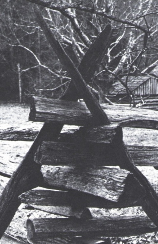 In Cades Cove you will find some of the finest log buildings in America. Some are original; the others come from elsewhere in the park. The first log house on the 18-kilometer (11-mile)-loop-road tour belonged to John and Lurena Oliver, who bought their land in 1826. Their cabin, with its stone chimney and small windows, is typical of many in the Smokies, and it remained in the Oliver family until the[Pg 153] park was established. A stone in the Primitive Baptist Church cemetery just down the road commemorates John and Lurena, the first permanent white settlers in the cove. The church was organized in 1827, and the log building was used until 1887, though the members, who were pro-Union, felt they had to shut it down during the Civil War because of strong rebel sentiment.