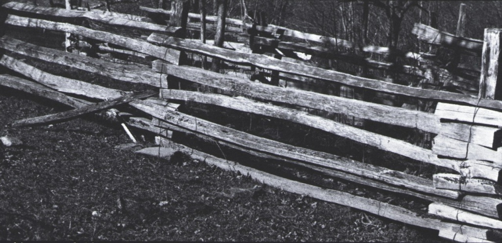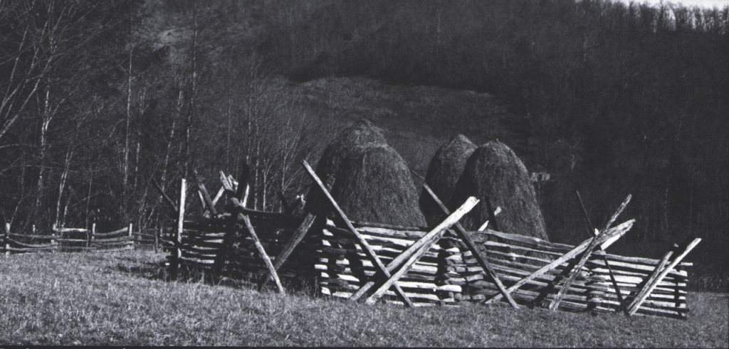 They ate well. The creek bottomlands provided rich soil for tomatoes, corn and beans, cabbage and onions, potatoes and pumpkins. Split rail fences were devices to keep the cattle, hogs, and sheep out of the crops; the animals themselves foraged freely throughout[Pg 24] the watershed, fattening on succulent grasses and an ample mast of acorns and chestnuts. Corn filled the cribs, salted pork and beef layered the meathouse, and cold bountiful springs watered the valley.