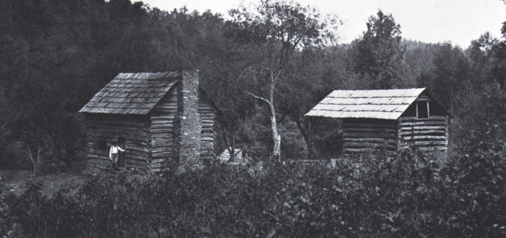 During the 1840s and 1850s, some 15 or 20 families built their sturdy log cabins ax-hewn out of huge chestnuts and poplars, and then built barns, smokehouses, corncribs, and other farm shelters beside the rocky creeks. George Palmer’s son Lafayette, called “Fate” for short, married one of Levi Caldwell’s daughters and established a large homestead by the main stream. Fate’s brother, Jesse, married and had 13 children; 6 of these 13 later married Caldwells.