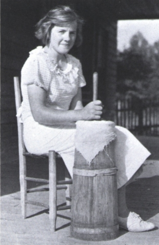 The springhouse served not only as the source of water but as a refrigerator. Here milk, melons, and other foods were kept, many of them in large crocks. The water usually ran through the springhouse in one half of a hollowed out log, or in a rock-lined trench. On hot, muggy days, a child sent to the springhouse for food or water might tarry a moment or two to enjoy the air conditioning.