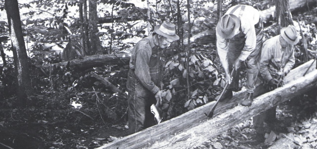 Besides these religious gatherings, women held bean-stringings and quilting bees, men assembled for logrollings or house-raisings to clear new lands and build new homes. One of the few governmental intrusions into Cataloochee life was the road requirement. During the spring and fall, all able-bodied men were [Pg 27]“warned out” for six days—eight if there had been washout rains—to keep up what had become the well-used Cataloochee Turnpike. If a man brought a mule and a bull-tongue plow instead of the usual mattock, he received double time for ditching the sides of the road. This heavy work gave the men both a chance to talk and something to talk about. But any of them would still have said that the hardest job of the year was hoeing corn all day on a lonely, stony hillside.