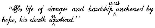 3. If several words or lines are omitted, it is sometimes necessary to write the words at the top or bottom of the proof. When this is the case, a line should be drawn from the caret to the words to be inserted; as, 25.