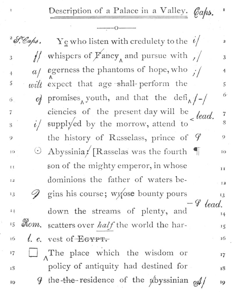 4. Sometimes so much has been omitted that it is necessary to refer to the copy. When this is so, indicate the omission by a caret, write See Copy in the margin, and inclose[107] within parenthetical marks or brackets the portion of the copy to be inserted in the proof.