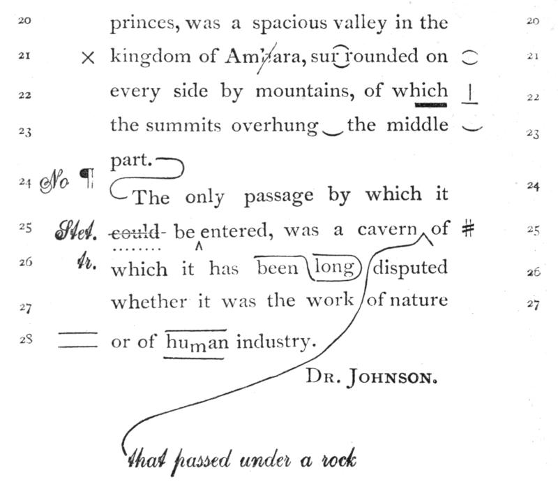 It is the custom with many proof-readers to draw a line from the mistake in the proof to the correction in the margin. This should always be done when the mistakes are numerous, or the lines crowded together.