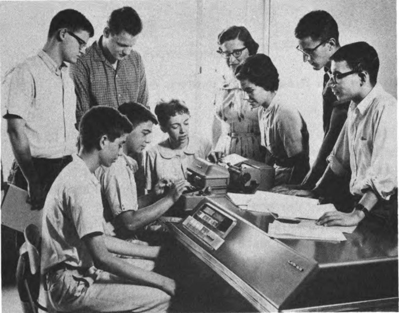 Students at Staples High School, Westport, Connecticut, attend a summer session to learn the techniques of programming and operating an electronic computer.