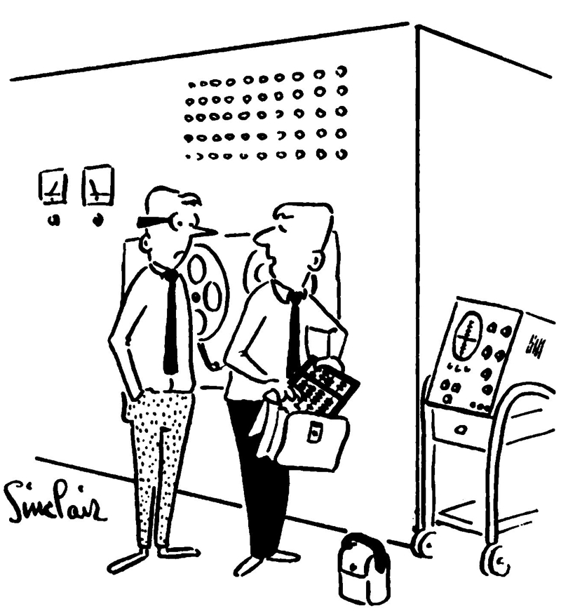 17It is comforting to remember that men will always tell the computer what it is supposed to do. No computer will ever run the world any more than the cotton gin or the steam engine or television runs the world. And in an emergency, we can always pull out the wallplug, can’t we?
