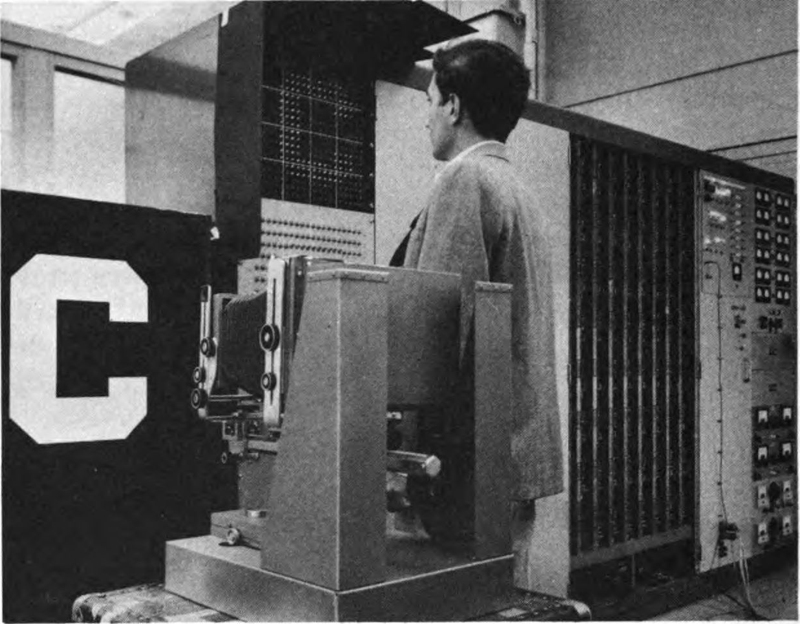 The computer, a backward child, learned to write long before it could read and does so at rates incomprehensible to those 241of us who type at the blinding speed of 50 to 60 words a minute. A character-generator called VIDIAC comes close to keeping up with the brain of a high-speed digital computer and has a potential speed of 250,000 characters, or about 50,000 words, per second. It does this, incidentally, by means of good old binary, 1-0 technique. To add to its virtuosity, it has a repertoire of some 300 characters. Researchers elsewhere are working on the problems to be met in a machine for reading and printing out 1,000,000 characters per second!