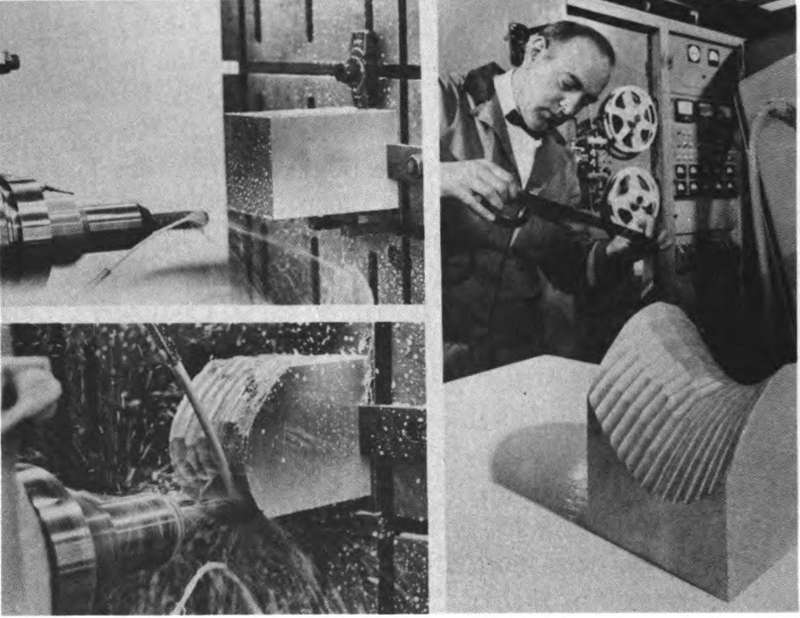 The writer’s dream, a typewriter that has a microphone instead of keys and clacks away merrily while you talk into it, is a dream no longer. Scientists at Japan’s Kyoto University have developed a computer that does just this. An early experimental model could handle a hundred Japanese monosyllables, but once the breakthrough was made, the Japanese quickly pushed the design to the point where the “Sonotype” can handle any language. At the same time, Bell Telephone Laboratories works on the problem from the other end and has come up with a system for a typewriter that talks. Not far behind these exotic uses of digital computer techniques are such things as automatic translation of telephone or other conversations.