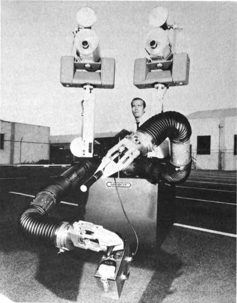 Withstanding underwater pressures, at depths too great for human divers, a Mobot vehicle demonstrates in this artist’s concept how it can perform salvage and rescue operations at the bottom of the ocean.