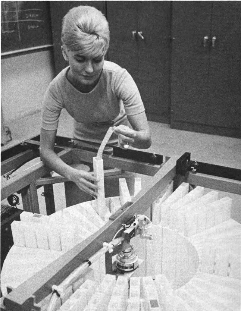 The huge amounts of information—books, articles, speeches, 14and records of all sorts—are beginning to make it absolutely necessary for an efficient information retrieval system. Many cases have been noted in which much time and effort are spent on a project which has already been completed but then has become lost in the welter of literature crammed into libraries. The computer is a logical device for such work; in a recent test such a machine scored 86 per cent in its efforts to locate specific data on file. Trained workers rated only 38 per cent in the same test!