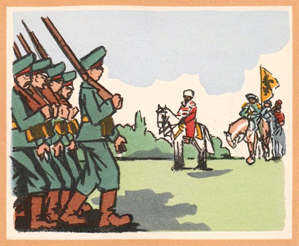 ..... Pendant plus de quatre années vous avez âprement défendu dans les boues de l’Yser le dernier lambeau de notre territoire. Enfin, achevant de forcer l’admiration universelle, vous venez d’infliger à l’ennemi une sanglante défaite.....