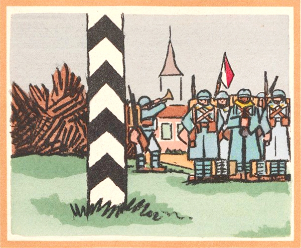 Au nord de Delle, deux patrouilles allemandes du 5e chasseurs à cheval ont franchi la frontière dans la matinée d’aujourd’hui et ont pénétré jusqu’aux villages de Joncherey et Baron à plus de 10 kilomètres de la frontière. L’officier qui commandait la première a brûlé la cervelle à un soldat français.