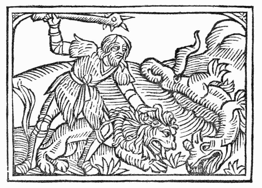 Et pour donner materiel exemple de force allegue hercules/ affin que doublement soit vaillable c’estassavoir en tant que touche ceste vertu. Et mesmement es faitz de chevalerie ou icelluy fut tresexcellent. & pour la haultesse de hector estoit chose convenable luy donner hault exemple. Hercules fut ung chevalier de grece de merveilleuse force & mist a fin maintes chevalereuses prouesses/ grand voiagier fut par le monde. Et pour les grans & merveilleux voyages que il fist es choses de grant force/ les poetes qui parlerent soubz couverture & en maniere de fable disent que il alla en enfer combatre aux princes infernaulx/ & que aux serpens & fieres bestes se combatoit qui est a entendre les fortes emprinses que il faisoit. Et pour ce dit au bon chevalier que il se doibt mirer c’estassavoir en ses prouesses & vaillances selon sa possibilité. Et ainsi comme la clarté du soleil est proffitable a tous/ peult estre bon exemple. Si comme dit ung philozophe. Le grain de forment quant il chiet en bonne terre il est a tous proffitable. Semblablement peult estre bon exemple a tous ceulx vaillable qui vaillance desirent. Et dit ung sage la vertu de force fait l’homme permanable a vaincre toutes choses