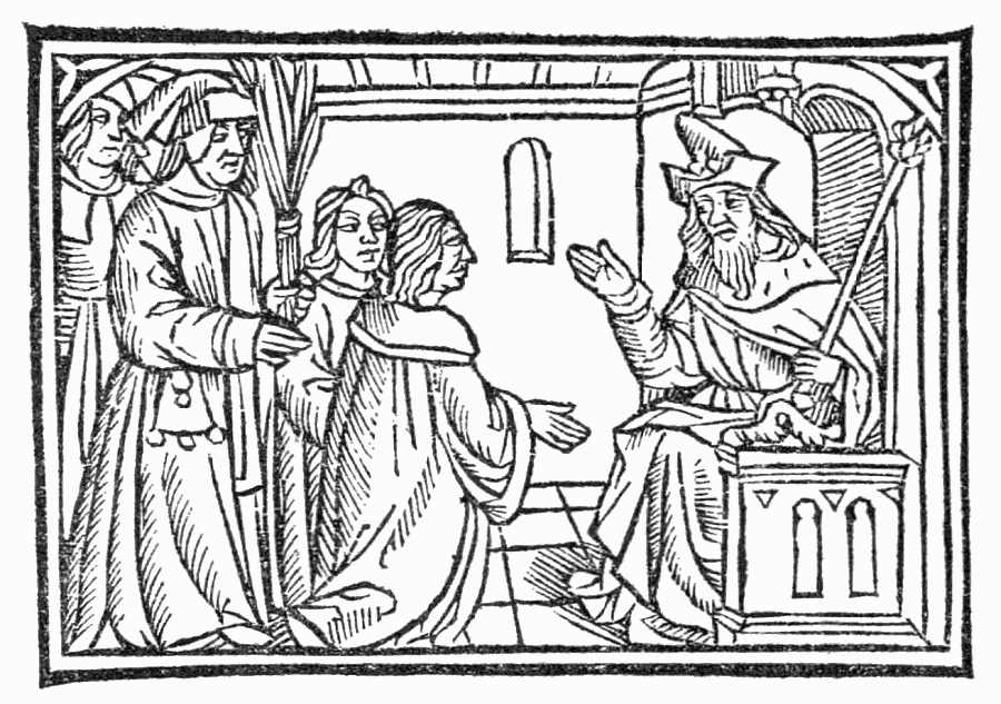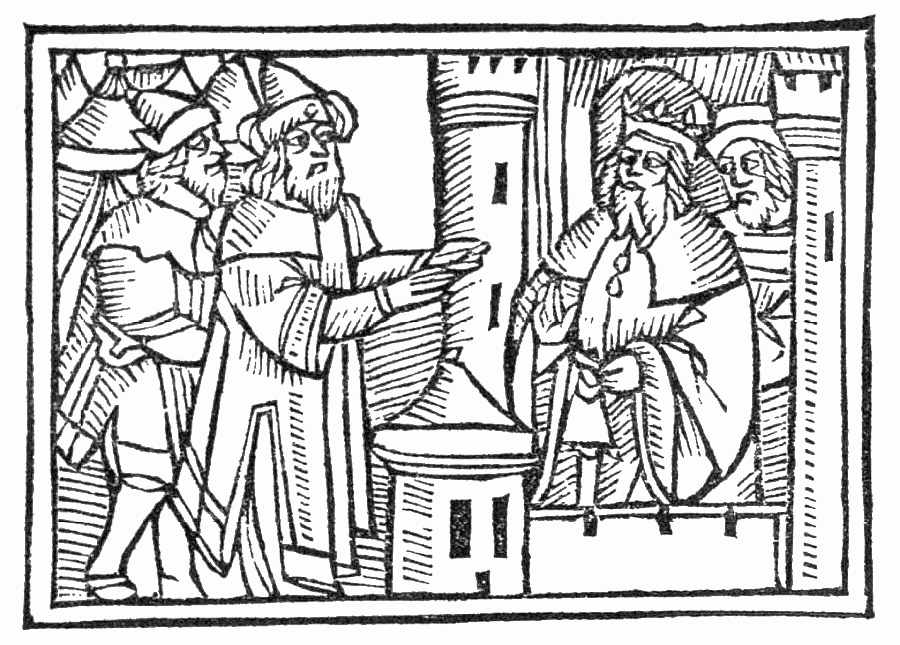 Cesar augustus fut empereur de romme & de tout le monde/ & pour ce que au temps de sa seigneurie fut paix par tout le monde que il seigneurioit paisiblement/ la folle gent mescreant tenoient que celle paix fust pour cause du bien de luy/ mais non estoit/ car c’estoit pour cause de Jesuchrist qui estoit né de la vierge Marie & ja estoit sur terre/ & tant comme il vesquit paix fut par tout le monde/ si vouloyent adorer cesar comme dieu/ mais adonc sibile Cumana lui dist que bien gardast que adorer ne se feist/ & qu’il n’estoit fors ung seul dieu qui tout avoit creé. Et lors le mena sur une haulte montaigne hors de la cité & dedens le soleil par la voulenté nostreseigneur apparut une vierge tenant ung enfant. Sibile luy monstra & luy dist que celuy estoit vray dieu qui devoit estre adoré/ & adonc Cesar le adora. Et pource que cesar augustus qui prince estoit de tout le monde apprint a congnoistre dieu a la creance d’une femme peult estre dit a propos l’auctorité que dit Hermes. Ne te soit point honte d’ouyr verité & bon enseignement qui que le die/ car verité anoblist celluy qui la prononce.