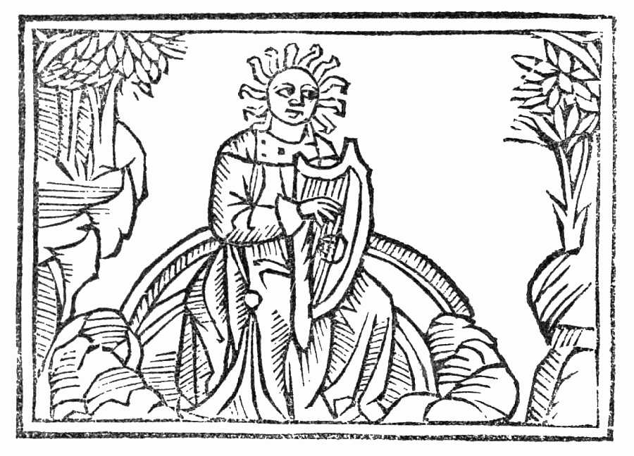 Appollo ou phebus est le soleil au quel le jour du dimenche est attribué/ & aussi le metal que nous appellons or le soleil par sa clarté monstre les choses mussees. Et pour ce verité qui est clere et monstre les secretes choses lui peult estre attribuee. Laquelle vertu doibt estre en cueur & bouche de tout bon chevalier. Et a ce propos dit Hermes Aimes dieu & verité et donnes loyal conseil.